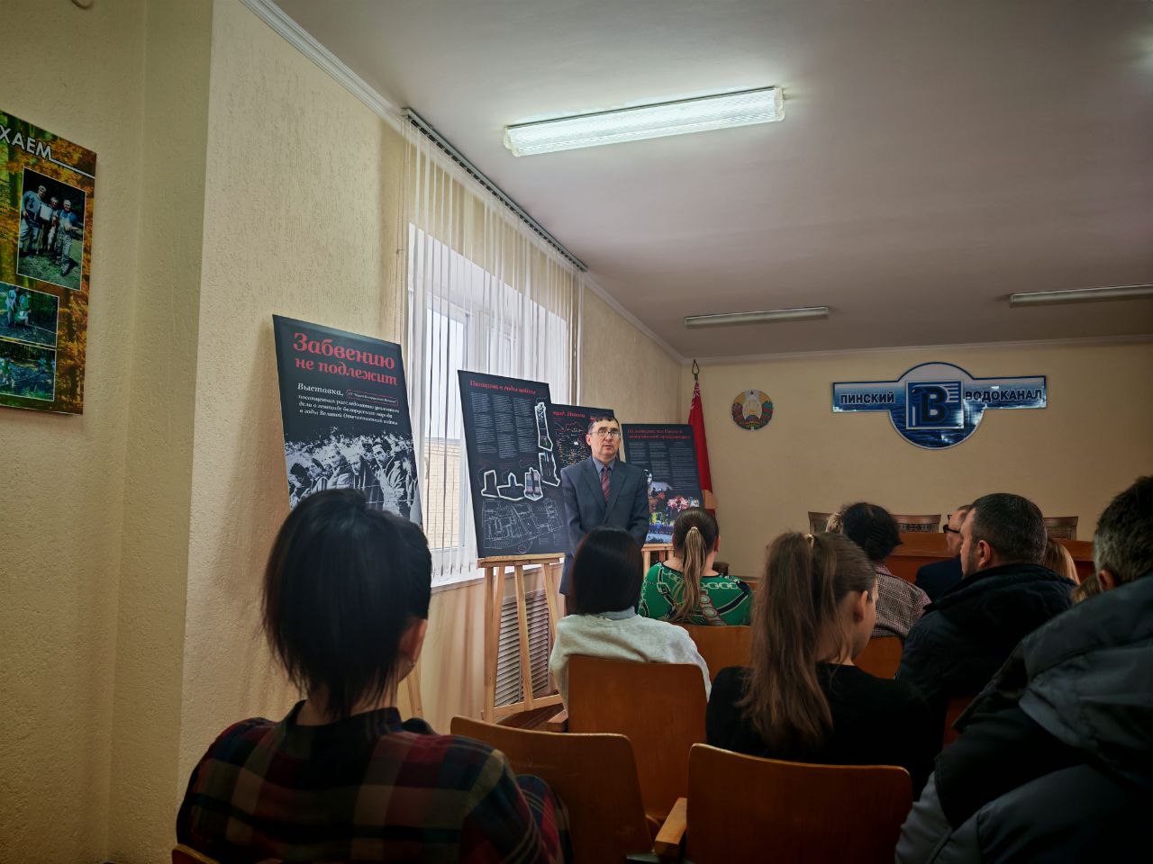 02.10.2025 на базе государственного предприятия «Пинскводоканал» была организована демонстрация обновленной передвижной выставки «Забвению не подлежит», посвященной геноциду белорусского народа в годы Великой Отечественной войны.