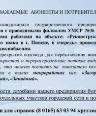 19 марта 2026 года с 10.00 до 12.00 прямую телефонную линию проведет заместитель директора филиала «Пинскводоканал» государственного предприятия «Брестводоканал» Гладкий Вадим Николаевич по телефону 8 (0165) 62 56 30. Читать подробнее